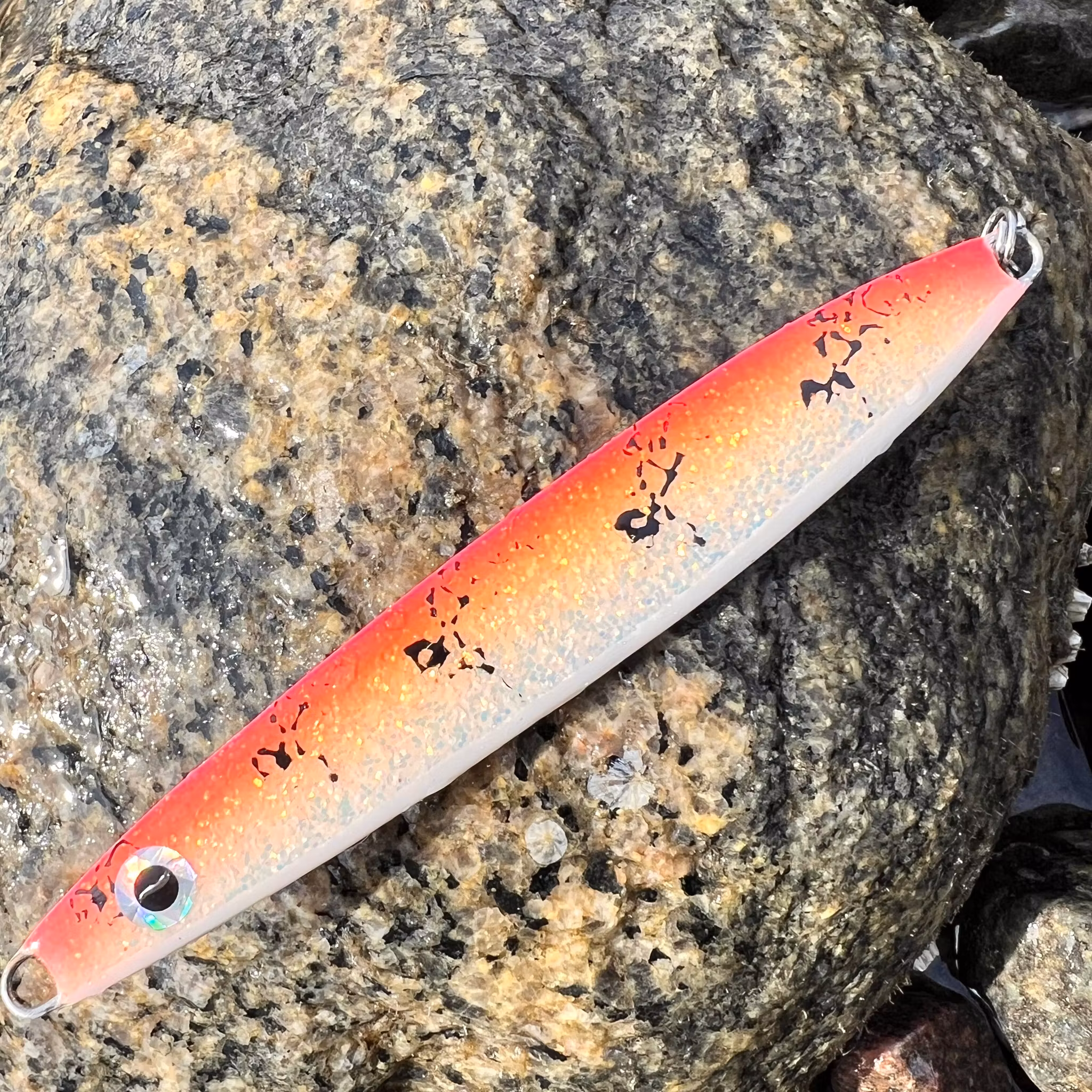 G10 tog jag fram för att kunna fiska långsamt i kallt vatten. I längd och vikt är den snarlik G9, men G10 är bredare och tunnare vilket ger den högre bärighet och mer rotation. Den har också ett lite mer oberäkneligt, stissigt rörelsemönster. Vid långsam invevning roterar den och byter håll då och då. Det går även fint att veva på G10 i ganska högt tempo innan den bryter ytan. På grund av sin breda och tunna form är den lite mer vindkänslig i kasten än mina övriga modeller.